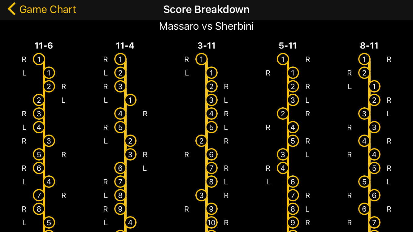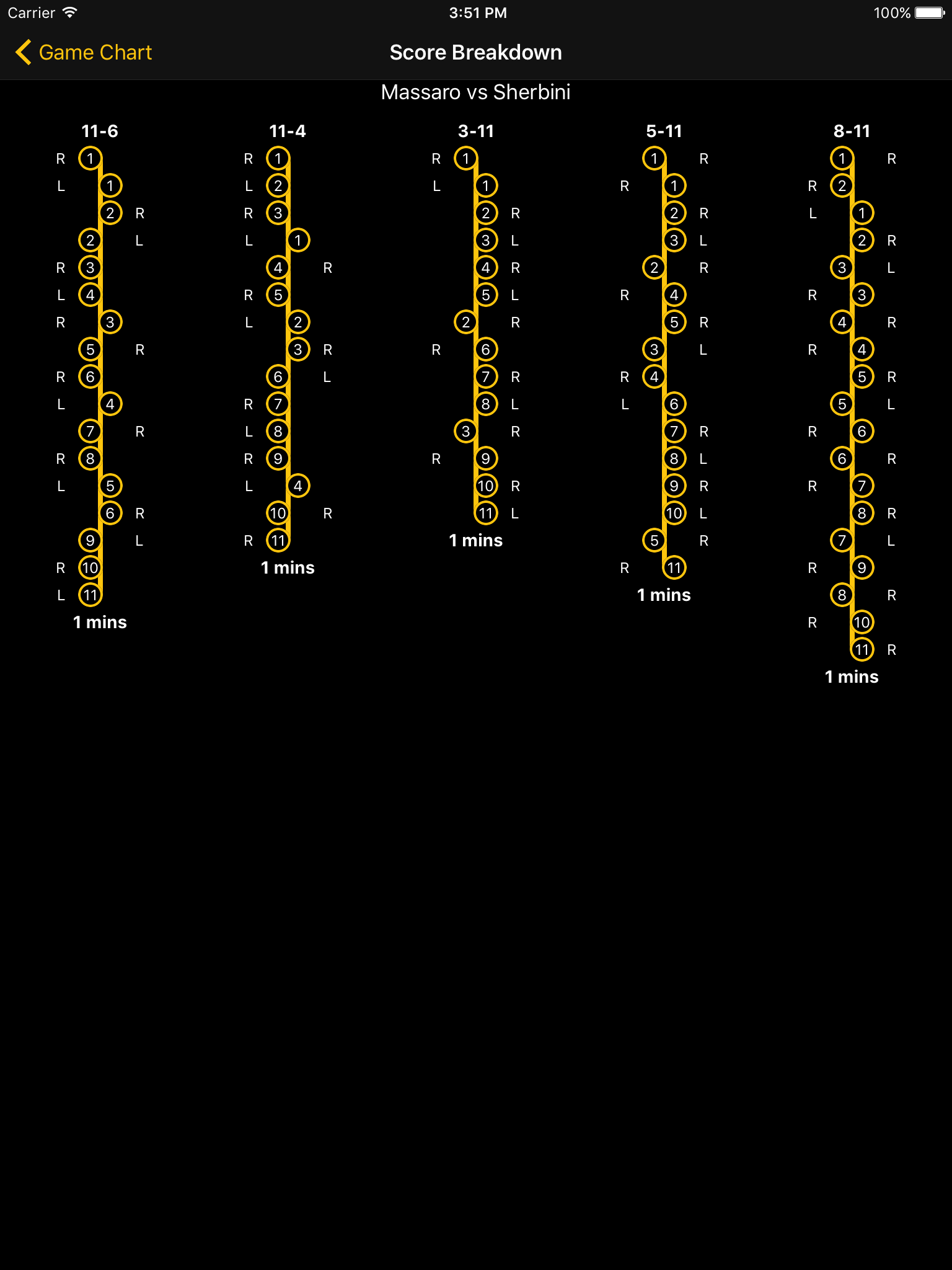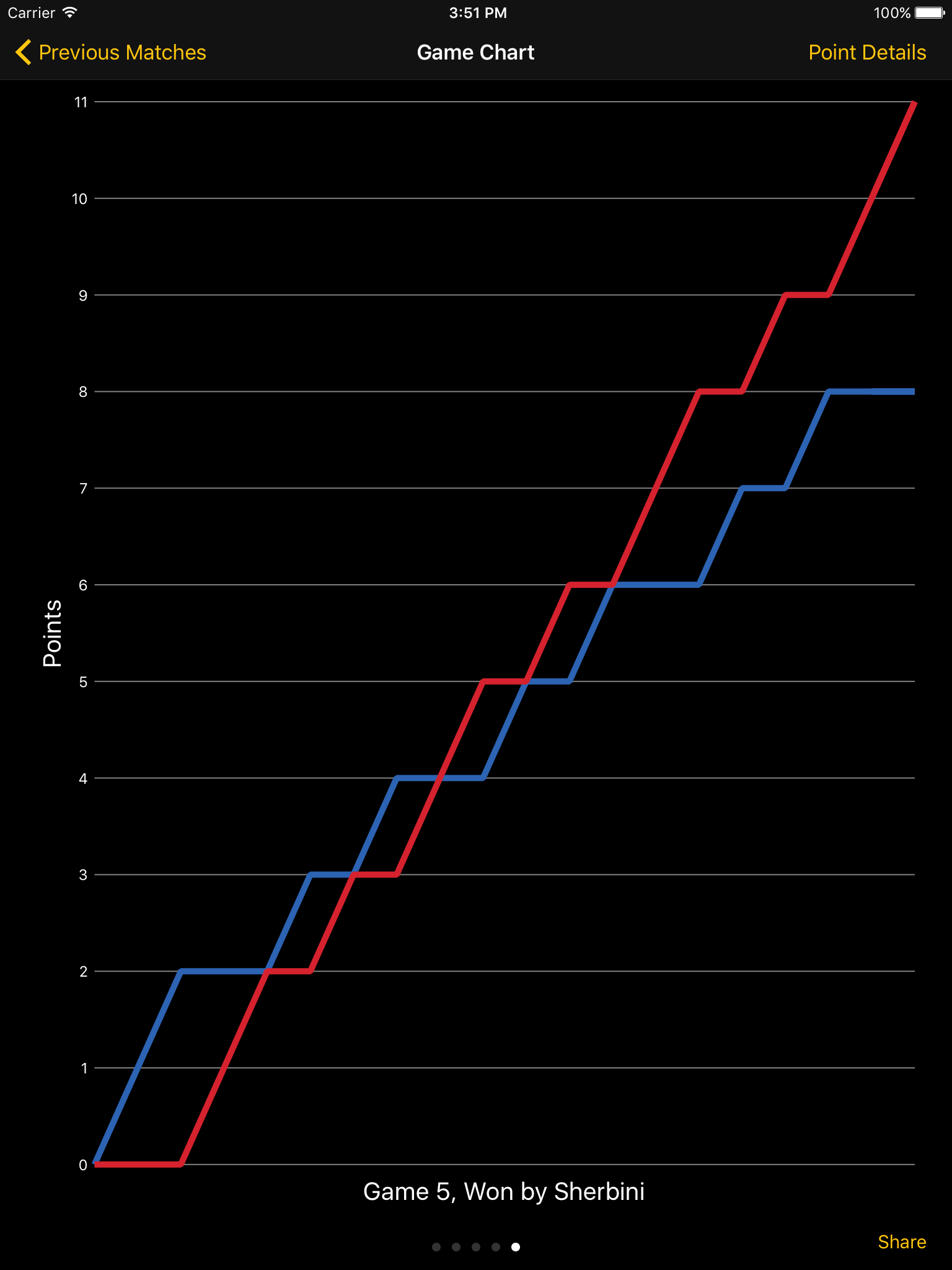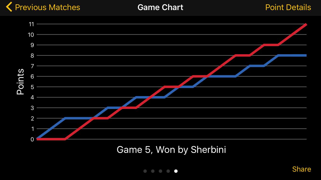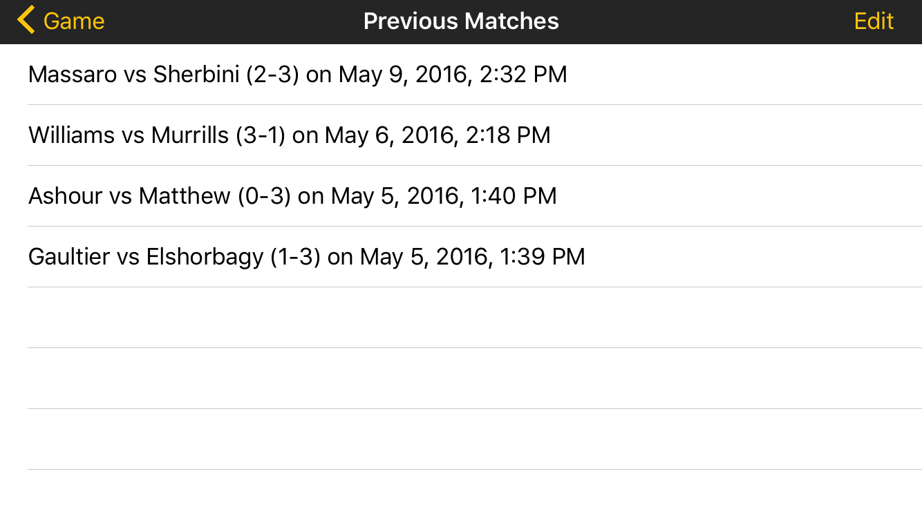 All matches played are accessible on the device so they can be viewed, or shared easily.