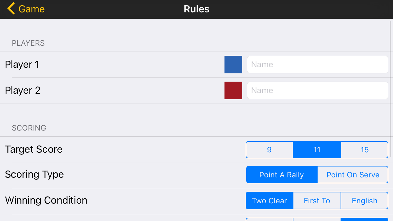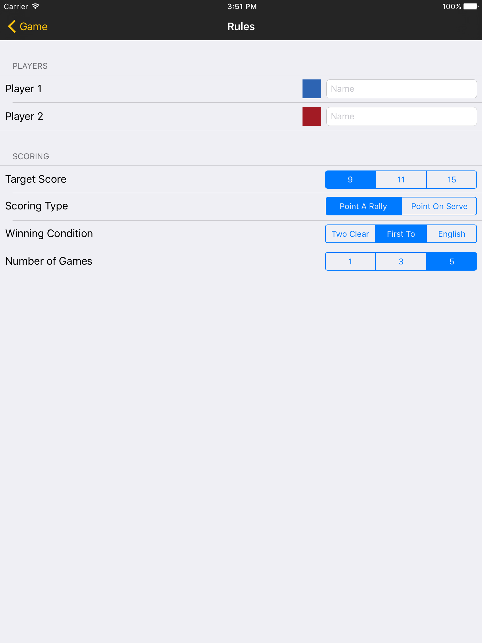 Player names and their shirt colors can be updated to make scoring and viewing even easier.